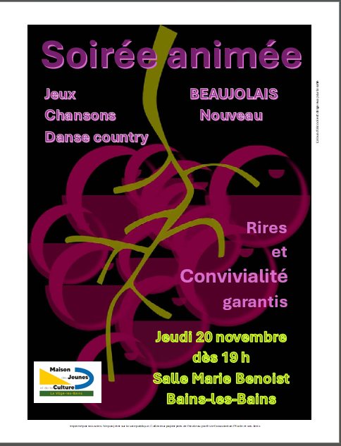 Venez partager un moment de convivialité et de bonne humeur autour du traditionnel Beaujolais Nouveau avec la MJC de La Vôge-les-Bains !