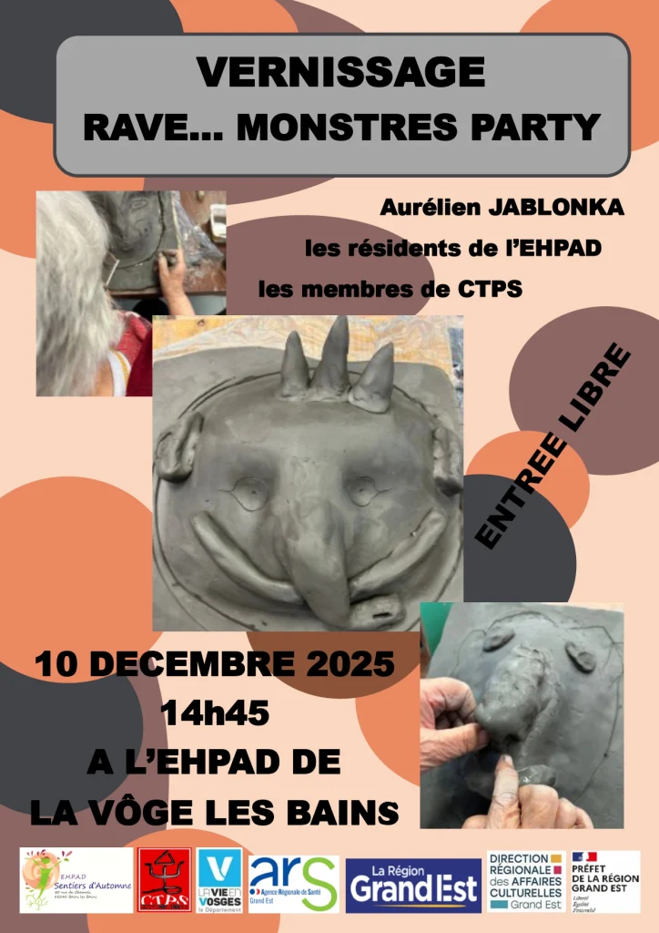 📅🎨 Et le 10 décembre à partir de 14h45, l’association vous invite au Vernissage “Rave… Monstres Party” avec Aurélien Jablonka, les résidents de l’Ehpad Sentiers d’Automne et les membres du CTPS.