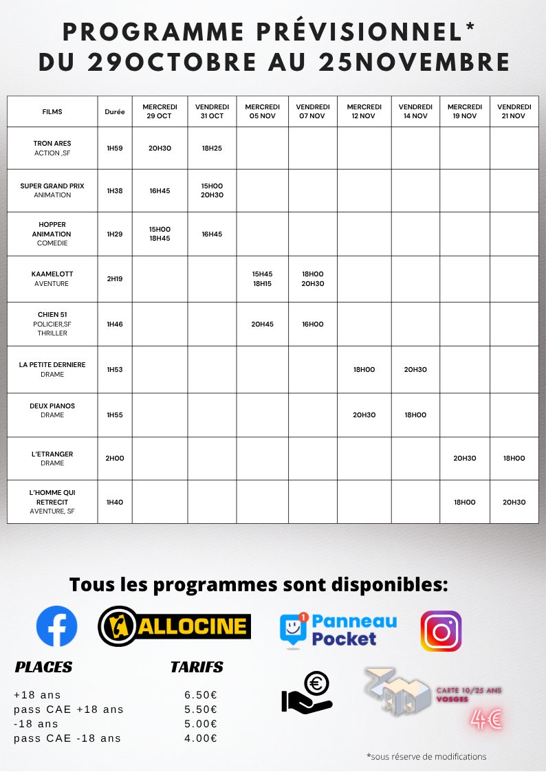 La salle, dotée du son Dolby Stéréo et d’un balcon d’une centaine de place vous propose une programmation récente et diversifiée qui fera la joie des petits et des grands à des tarifs avantageux.